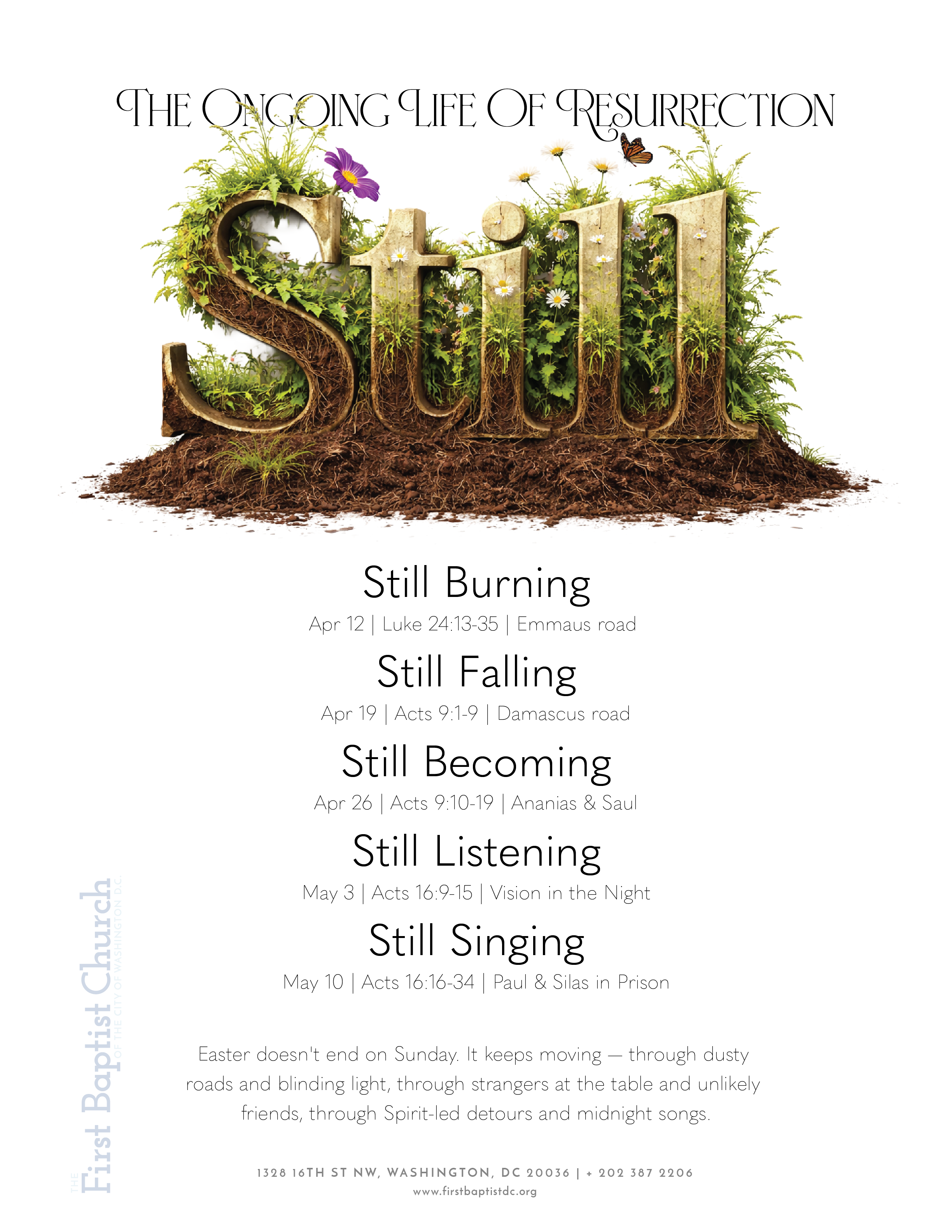 Easter doesn't end on Sunday. It keeps moving — through dusty roads and blinding light, through strangers at the table and unlikely friends, through Spirit-led detours and midnight songs. For five weeks we’ll walk with some of the first followers as they discover that resurrection isn't a moment to remember but a life to enter—burning, falling, becoming, listening, singing. And still. The Resurrection is not finished with us yet.